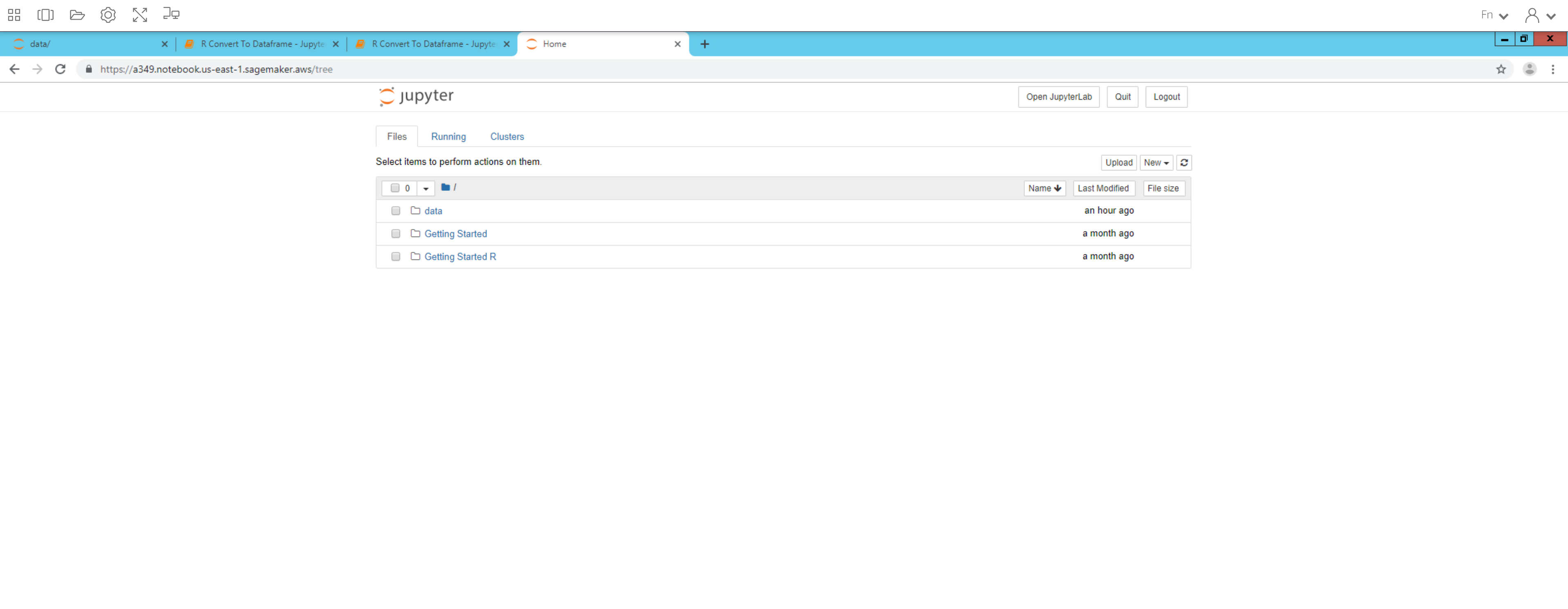 그러면 아래처럼 주피터 노트북 화면이 뜹니다. 주의. 매우 느립니다.