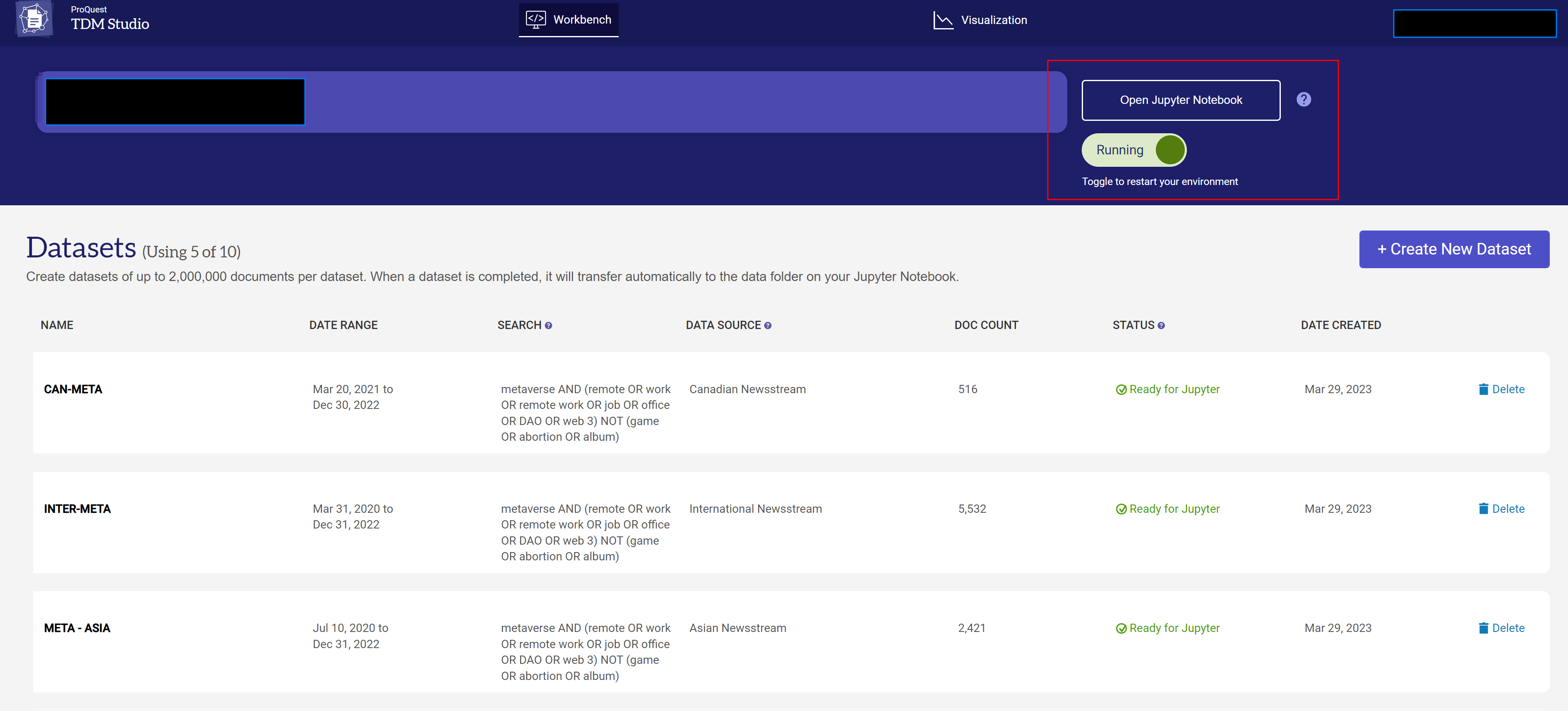 Ready for Jupyter 상태가 되면 주피터 노트북을 통해서 데이터를 추출할 수 있습니다.