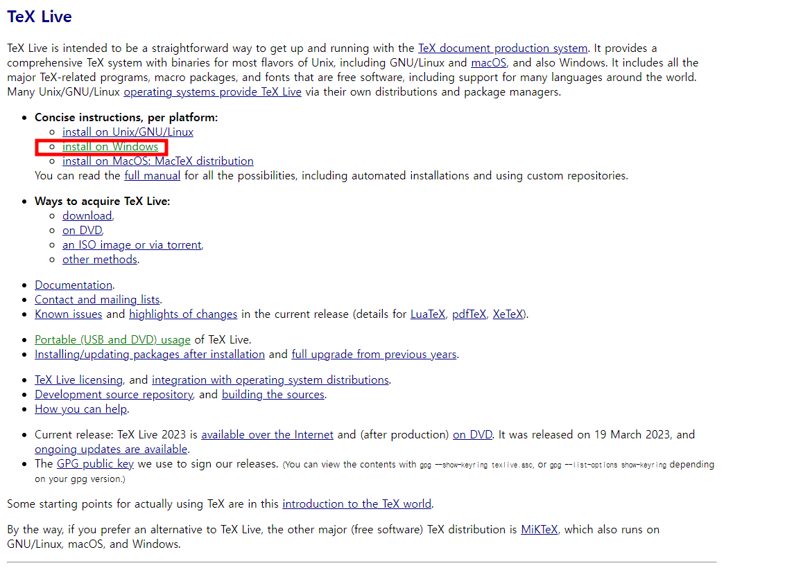 1) LaTex 기본 프로그램인 TEXLIVE 설치